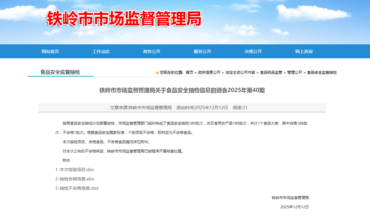 对本次公布的不合格样品,铁岭市市场监督管理局已按程序开展核查处置。