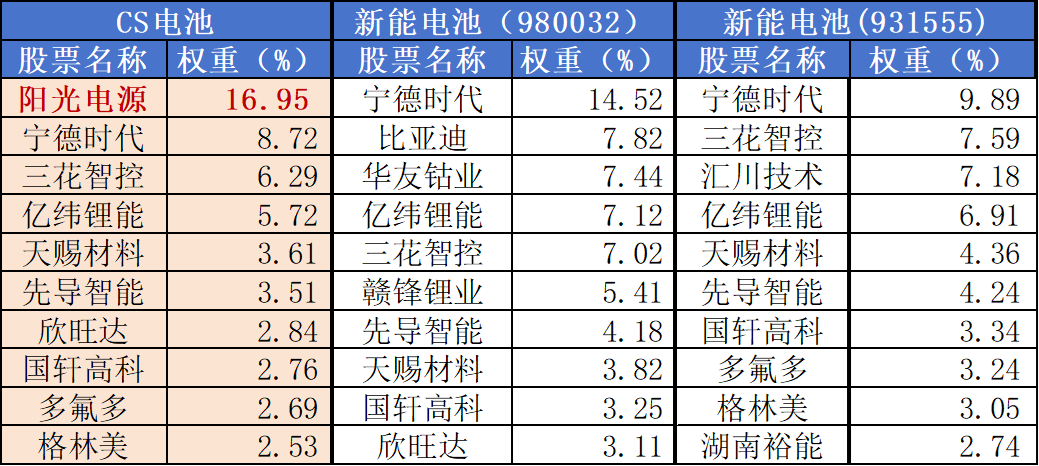 且对比前十大成分股来看,电池50ETF(159796)标的指数聚焦储能与动力电池两大黄金板块,其中第一权重股光伏逆变器龙头占比达16.95%,其余同类指数不含该成分股,此外还涵盖全球动力电池龙头、固态电池先行者等优势企业。