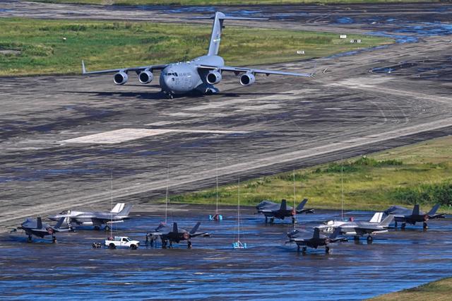 这是12月17日在波多黎各塞瓦拍摄的美军军机。近期,在美国海外属地波多黎各,美军已恢复并升级废弃21年的罗斯福路海军基地,向这一基地部署F-35战机、运输机等多种装备。 新华社/法新