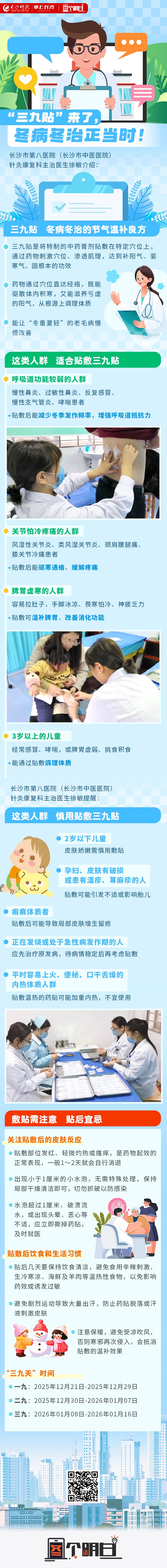 12月21日将迎来2025年最后一个节气——冬至。随着冬至脚步临近,“三九”时节悄然将至。长沙市中医医院(长沙市第八医院)针灸康复科的诊室内暖意融融,许多市民带着对冬日安康的期许,前来咨询、贴敷“三九贴”。