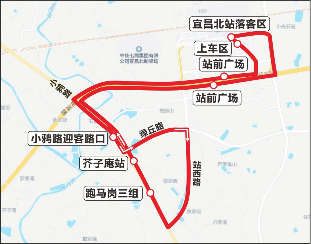 该微循环线路依托小鸦路就近公交站点,与108路实现无缝换乘,串联区域内客流集散点,满足宜昌北站“最后一公里”出行需求。