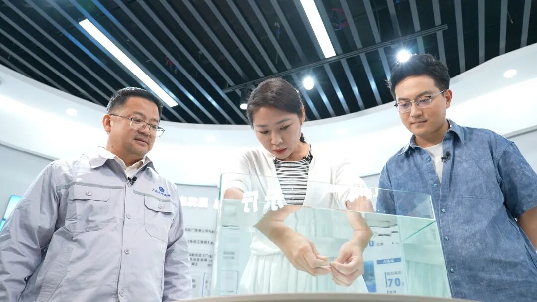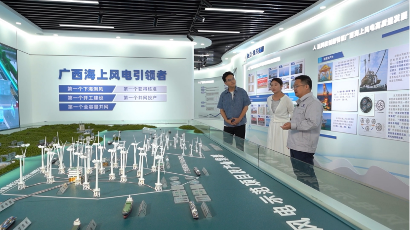 风机每转动一圈,就能为一户家庭带来三天的用电量,每年可满足1.5万户家庭用电需求,这就是海上风电所释放的强劲动能。壮美观察团走进防城港海上风电陆上开关站,通过一个小实验感受海上风电的施工难度,为工程师克服万难的智慧与决心所叹服。