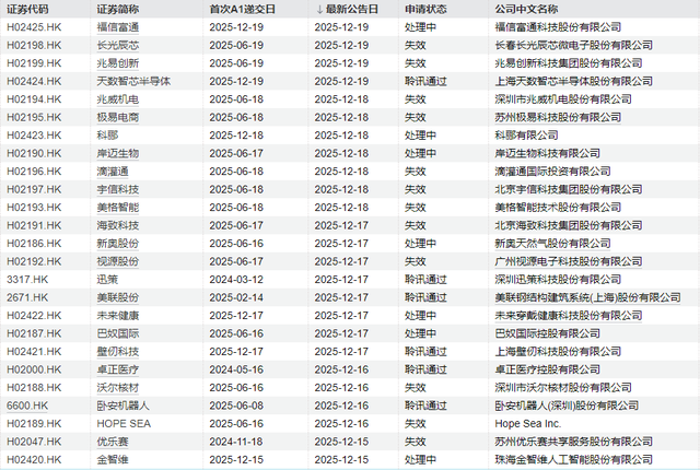 长春长光辰芯微电子股份有限公司、兆易创新科技集团股份有限公司、深圳市兆威机电股份有限公司、苏州极易科技股份有限公司、滴灌通国际投资有限公司、北京宇信科技集团股份有限公司、美格智能技术股份有限公司、北京海致科技集团股份有限公司、广州视源电子科技股份有限公司、深圳市沃尔核材股份有限公司、Hope Sea Inc.、苏州优乐赛共享服务股份有限公司等12家公司的申请失效。