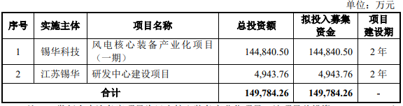 锡华科技2025年12月18日披露的额首次公开发行股票并在主板上市招股说明书显示,公司原拟募资149,784.26万元,用于风电核心装备产业化项目(一期)和研发中心建设项目。