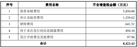 本次公司公开发行新股的发行费用合计8,423.43万元(不含增值税),其中保荐承销费用5,850.00万元。