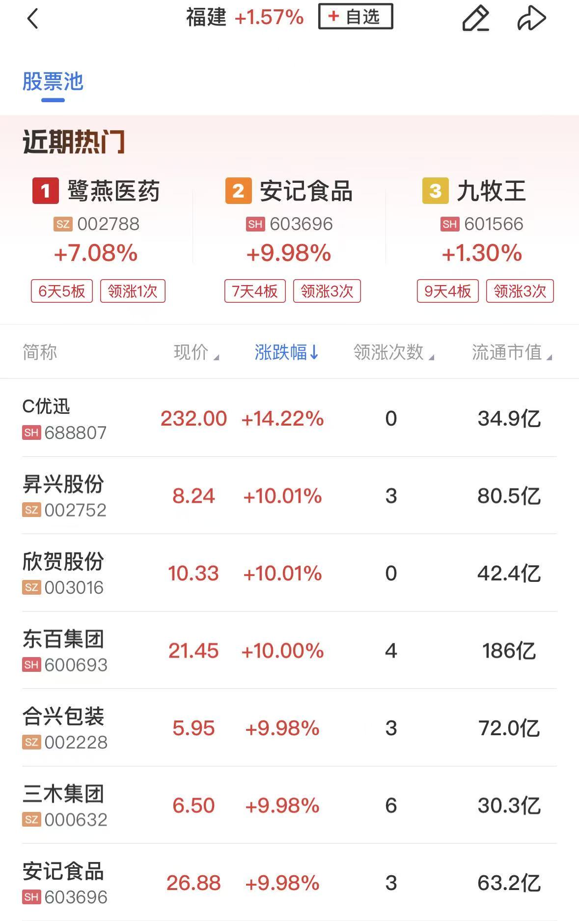 福建本地股盘中持续走强,三木集团、东百集团、安记食品、合兴包装、欣贺股份、安通控股、昇兴股份涨停,鹭燕医药、厦门国贸、日上集团、实达集团等跟涨。