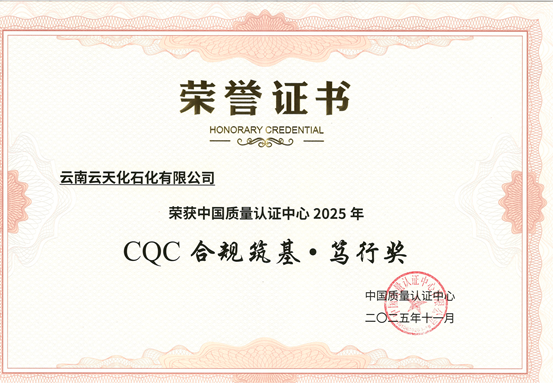 近日,云南云天化石化有限公司荣获中国质量认证中心颁发的2025年“CQC合规筑基·笃行奖”,并受邀参加合规管理交流会,同时做经验交流分享。
