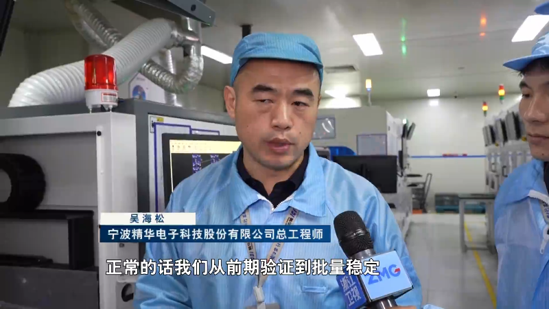 宁波精华电子科技股份有限公司总工程师 吴海松:整个过程就花了15天,正常的话我们到从前期验证到批量稳定的话,最少两个月。这里面也和我们的供应商、整条供应链的支持是分不开的。