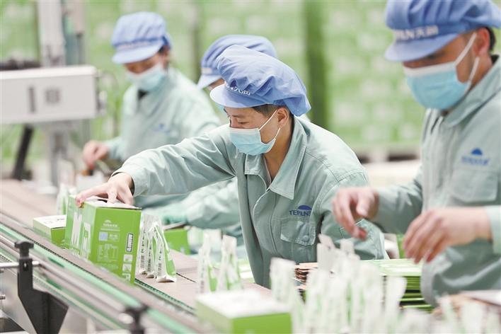 新疆天润乳业股份有限公司工人在包装酸奶(资料图片)。天润乳业持续建立完善现代企业制度,实现了国有资本保值增值,企业效益显著提升。 兵团日报常驻记者 田园 摄