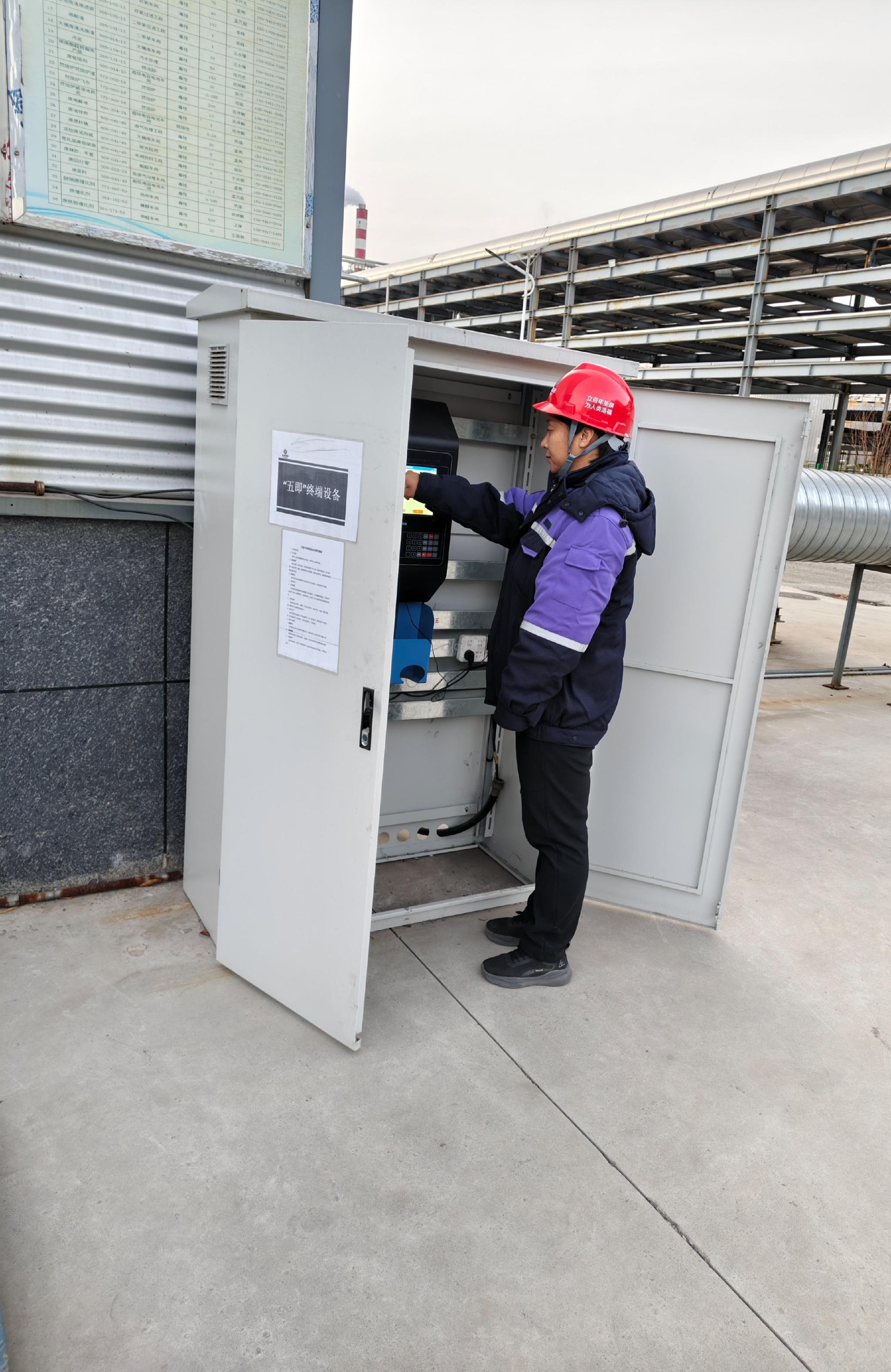 图为企业环保管理人员扫码登录济南市活性炭“码上换”小程序,开展活性炭更换工作。