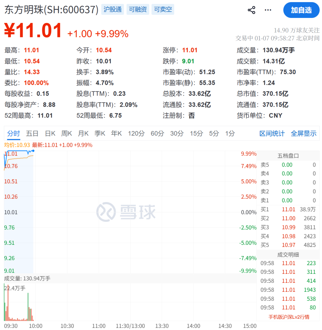1月7日,东方明珠开盘后迅速涨停。据悉,东方明珠作为有限合伙人,以自有资金合计4.99亿元参与投资郑州航空港先进计算一期、二期两只专项基金,核心目的为受让超聚变股权。