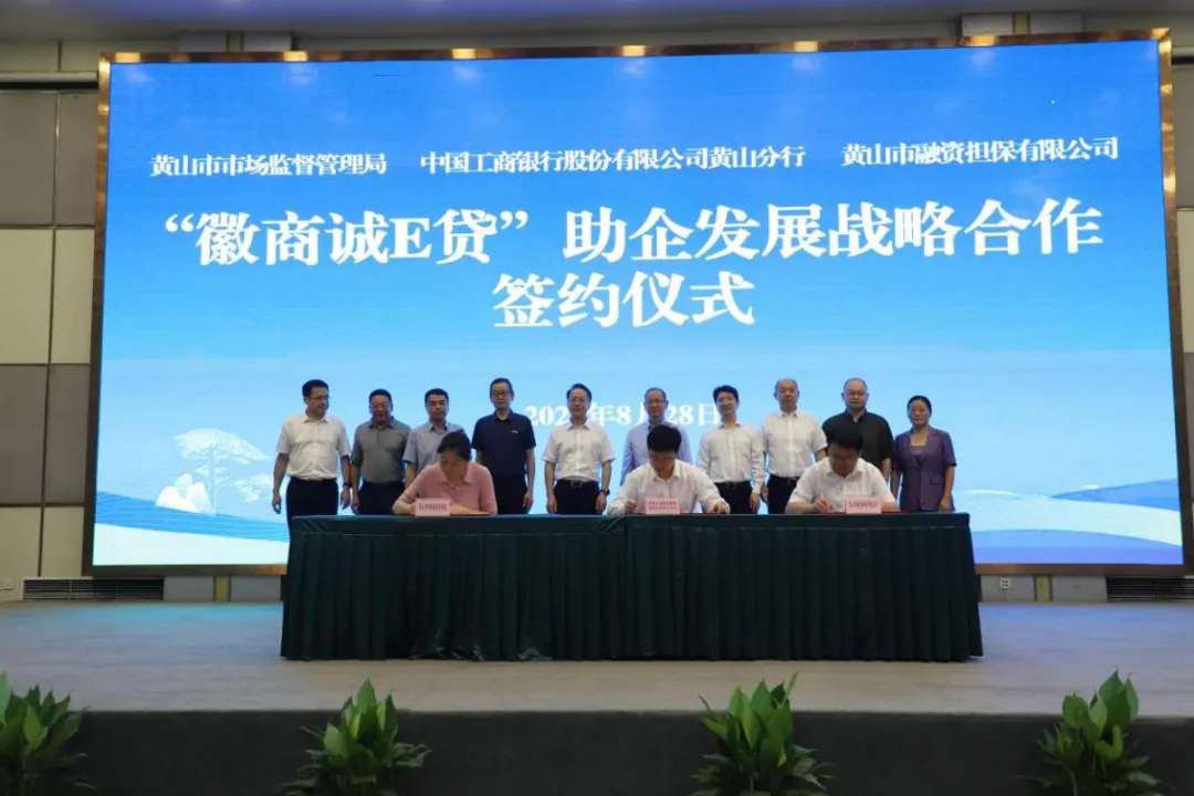 ★8月28日,市担保公司与市市场监管局、工商银行黄山分行联合推出“徽商诚E贷”产品,系我省首创信用助企融资模式。