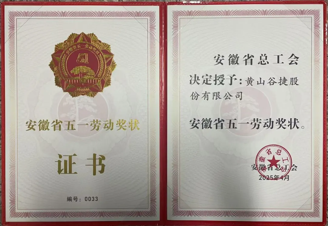 ★黄山谷捷获“安徽省五一劳动奖状单位”称号。