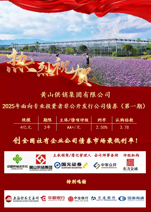 ★11月18日,成功发行4亿元3年期公司债券,票面利率低至2.5%,较去年12月2.95%的同期可比最低利率再下浮45BP,创下全国市级供销集团债券利率新纪录。