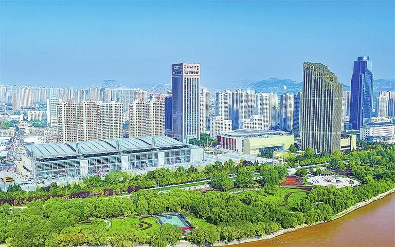 甘肃电投集团开发建设的甘肃会展中心建筑群及配套区全景。