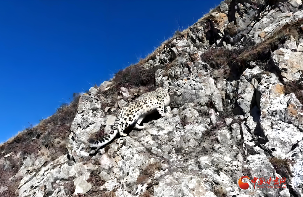 中国甘肃网1月12日讯(西北角·中国甘肃网记者 张慧雅 通讯员 张广文 李军)近日,甘肃祁连山国家级自然保护区华隆自然保护站巡护人员在马牙雪山核心区域开展常态化巡护监测时,首次利用无人机清晰拍摄到国家一级保护动物雪豹的珍贵画面,为该区域雪豹种群动态研究与栖息地保护提供了高价值的影像数据。