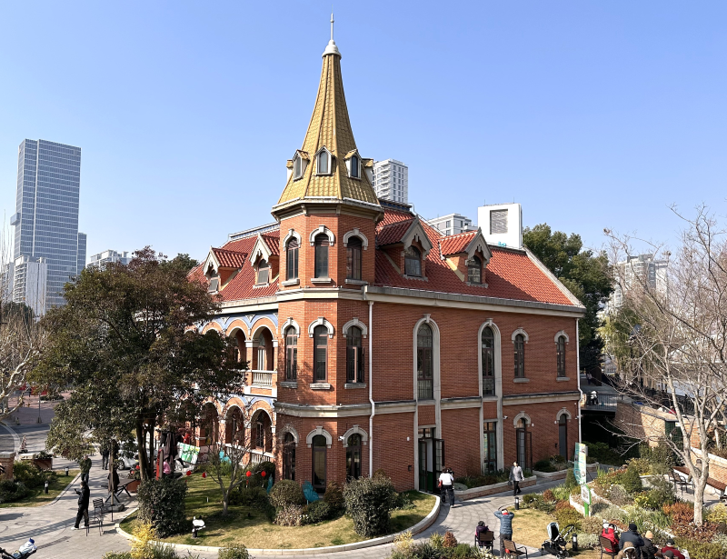 食堂所在的老洋房被称为“蝴蝶堡”,位于康定东路28号。过去它曾是少儿图书馆,如今被改造成了石门二路街道蝴蝶湾滨河党群服务中心,于2025年9月焕新开放。