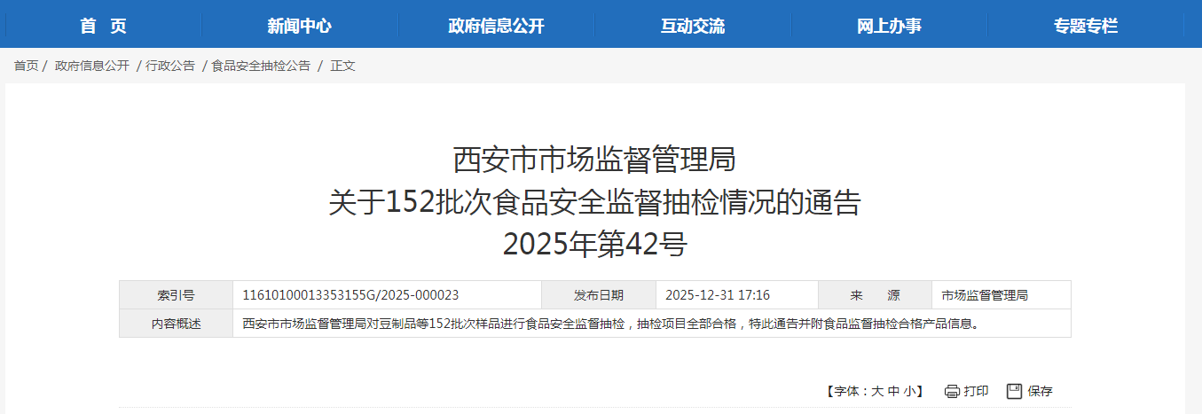 西安市市场监督管理局关于152批次食品安全监督抽检情况的通告