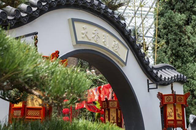 寓意圆满的月门“天香引骏”将园内美景收纳其中。穿过此门,游客将感受百花之芬芳,骏马之祥瑞,寓意着在新的一年里,美好的开端必将吸引和带来无限的机遇与好运。