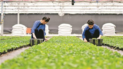 工人在位于榕江县的贵州省甜甜榕江农业贸易有限公司育苗大棚进行罗汉果苗管护工作。贵阳银行为该企业提供了500万元专项资金。
