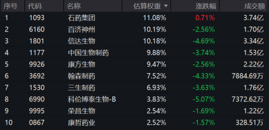 港股通创新药ETF(159570)标的指数权重股多数飘绿:科伦博泰生物-B跌超5%,信达生物、翰森制药跌超4%,中国生物制药、三生制药跌超3%,百济神州、康方生物跌超2%。上涨方面,石药集团逆市涨近1%。