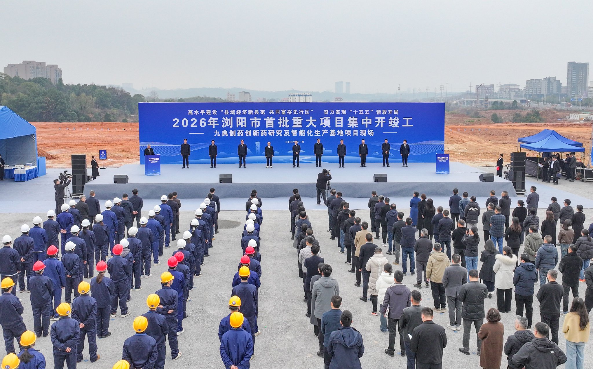 “我宣布:九典制药智能化生产基地等142个项目,集中开竣工!”上午11时许,随着长沙市委常委、浏阳市委书记、浏阳经开区党工委第一书记肖正波铿锵有力的宣告,九典制药项目现场彩烟腾空,挖掘机巨臂挥舞,工程车汽笛长啸,奏响项目建设的新春序曲。