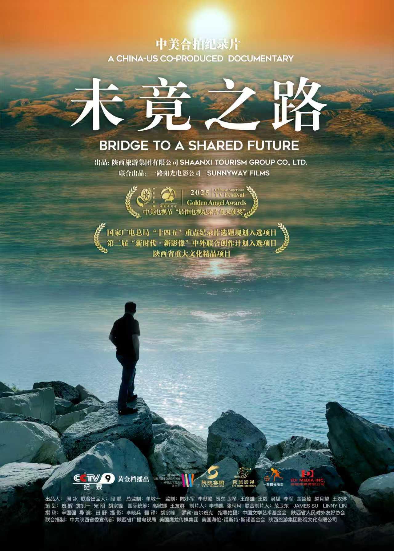由陕西旅游集团有限公司、陕西一路阳光公司出品,中国文学艺术基金会、陕西省人民对外友好协会指导拍摄,中共陕西省委宣传部、陕西省广播电视局、美国鹰龙传媒集团、美国海伦·福斯特·斯诺基金会、陕西旅游集团影视文化有限公司联合摄制的中美合拍四集纪录片《未竟之路》,将于2026年1月19日(星期一)19:27在CCTV-9黄金时段首播,每晚一集,每集25分钟。