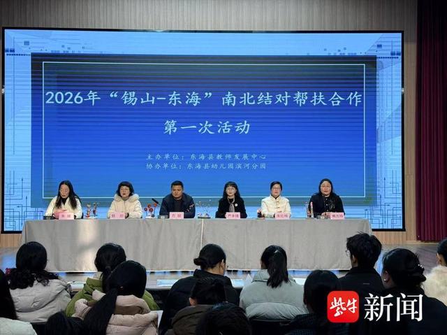 为深入贯彻江苏省南北结对帮扶合作战略,深化连云港、无锡两地学前教育协同发展,提升东海县学前教育教师课程资源开发利用能力,2026年1月16日,2026年“锡山-东海”南北教育结对合作第一次活动在东海县幼儿园滨河分园成功举办。