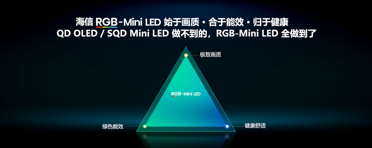 海信E8S的核心优势,源于RGB-Mini LED技术的代际突破,对QD-Mini LED、SQD-Mini LED等单色背光量子点Mini LED技术形成体验优势,其用户价值集中体现在画质、能耗、健康三大核心维度。