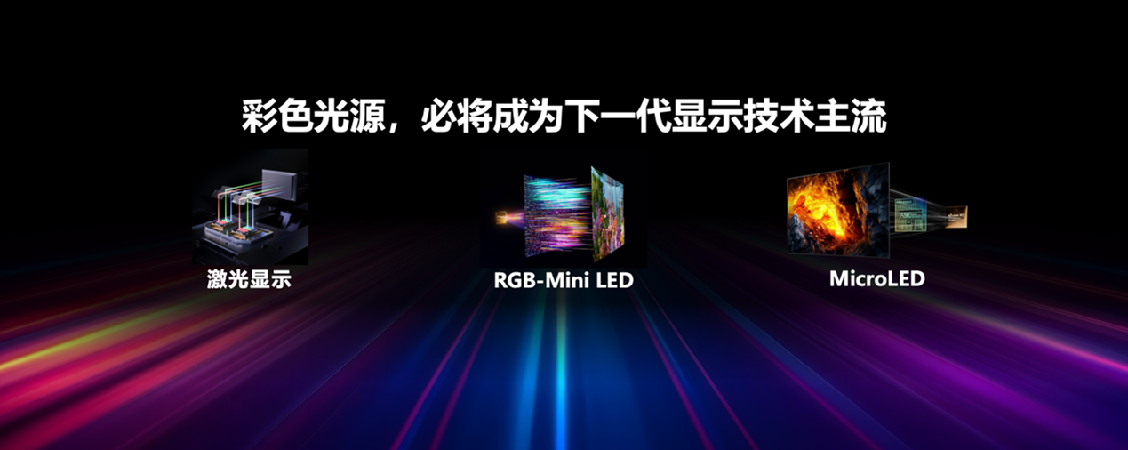 彩色光源替代单色光源是大势所趋,这已是全球显示行业的共识。彩色光源是下一代显示技术的必然方向,激光电视、Micro LED、RGB-Mini LED都是这一方向的核心落地成果。