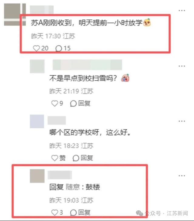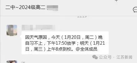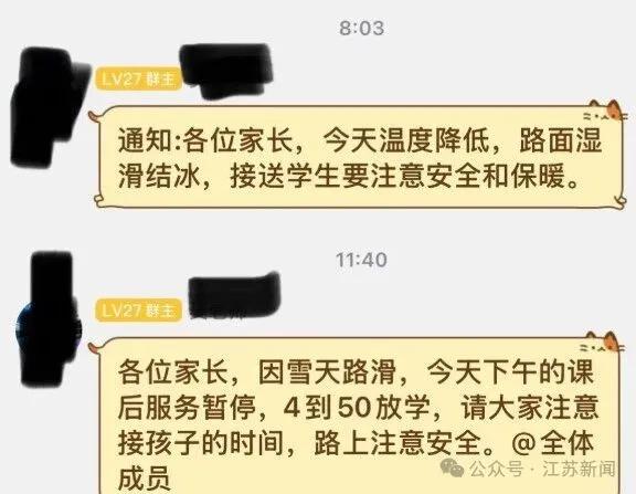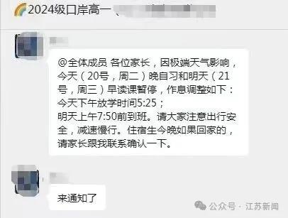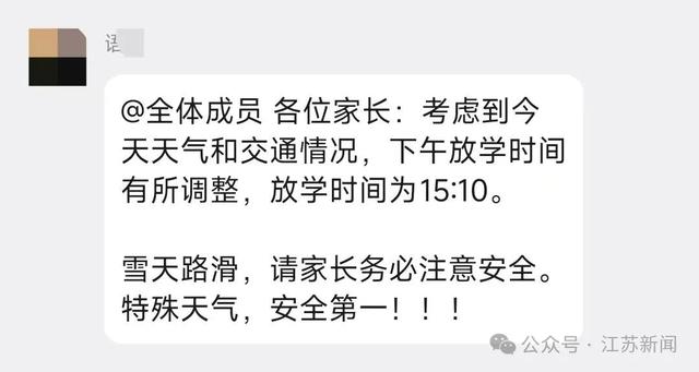 据网友反映,南京部分中小学通知,今天提前放学!多所初中学校提前一个小时放学,鼓楼、玄武等区小学也通知提前放学。