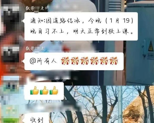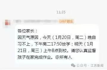 南京市鼓楼实验学校通知:各位家长晚上好!因雨雪天气变化,周一周二下午6点放学,没有晚自习,请大家准时接孩子。