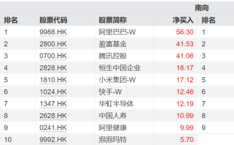 南向资金持续涌入港股。近七日以来,阿里巴巴-W以56.3亿港元的净买入位居榜首,腾讯控股、小米集团-W、快手-W、华虹半导体、阿里健康也均位于净买入榜前十。