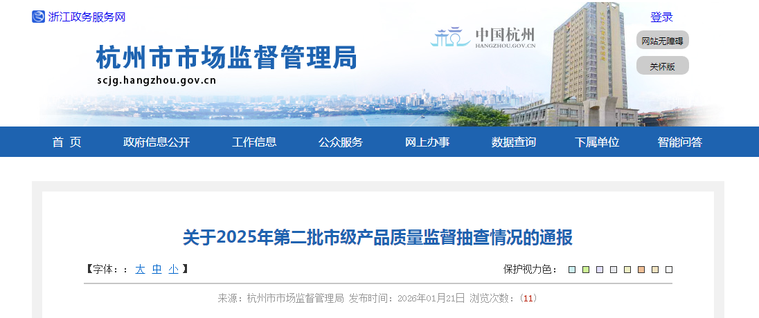 中国质量新闻网讯 据杭州市市场监督管理局网站消息,2025年,全市产品质量监管工作以坚守产品质量安全为主线,不断强化产品质量监督抽查工作,切实保障人民群众生命安全和身体健康。现将2025年第二批监督抽查情况通报如下: