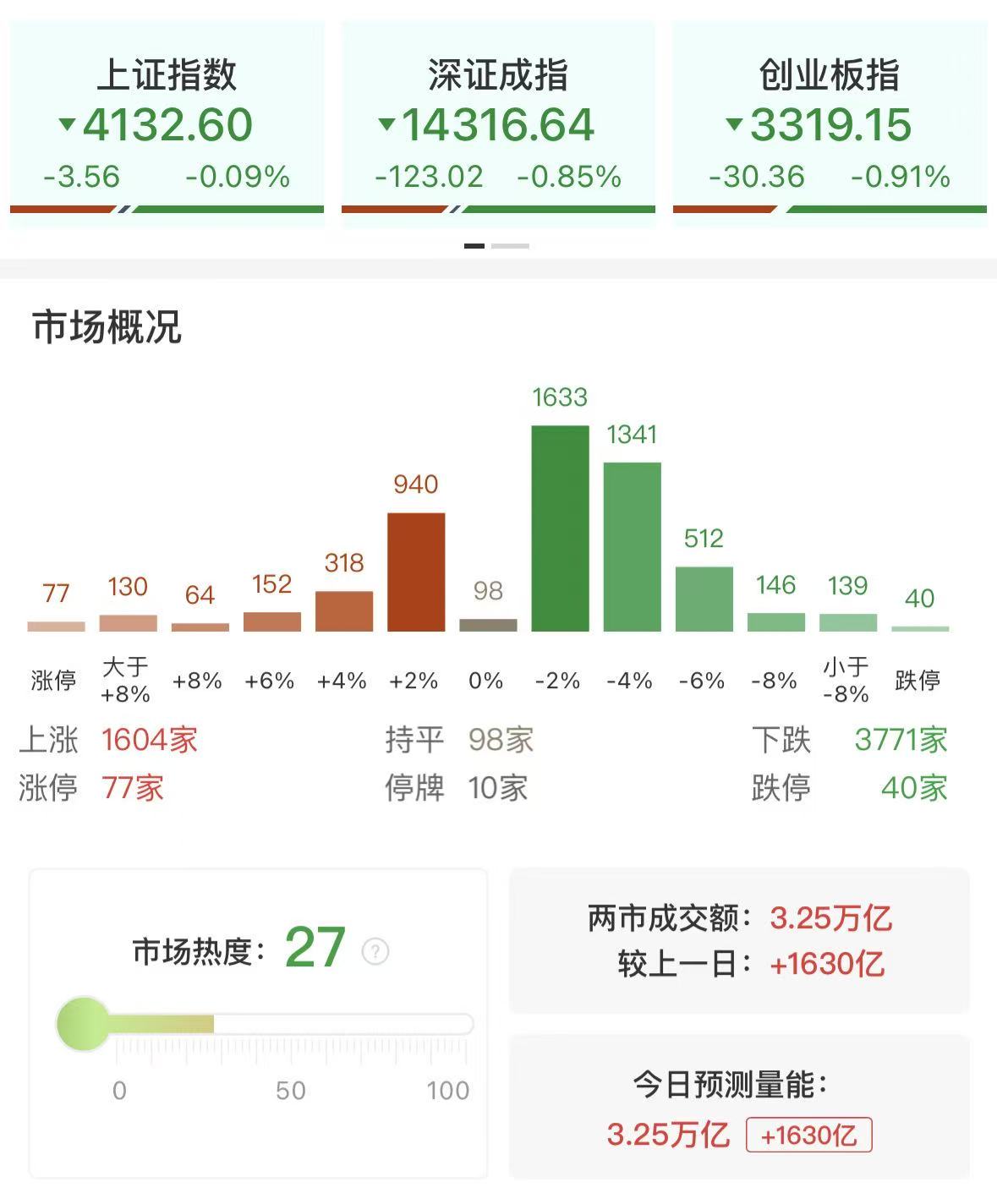 财联社1月26日讯,市场全天震荡调整,大小指数分化明显,深成指、创业板指高开低走,盘中均跌超1%。沪深两市成交额3.25万亿,较上一个交易日放量1630亿。盘面上,市场热点较为杂乱,全市场超3700只个股下跌。从板块来看,有色金属板块涨幅居前,其中贵金属概念领涨,四川黄金8天4板,晓程科技、湖南黄金、盛达资源等多股涨停,紫金矿业创历史新高。油气概念走强,中国海油创历史新高,洲际油气4天3板。化工板块震荡拉升,红宝丽、澄星股份涨停。下跌方面,商业航天再度陷入调整,多只商业航天人气股大跌,中国卫通、中国卫星跌停。截至收盘,沪指跌0.09%,深成指跌0.85%,创业板指跌0.91%。