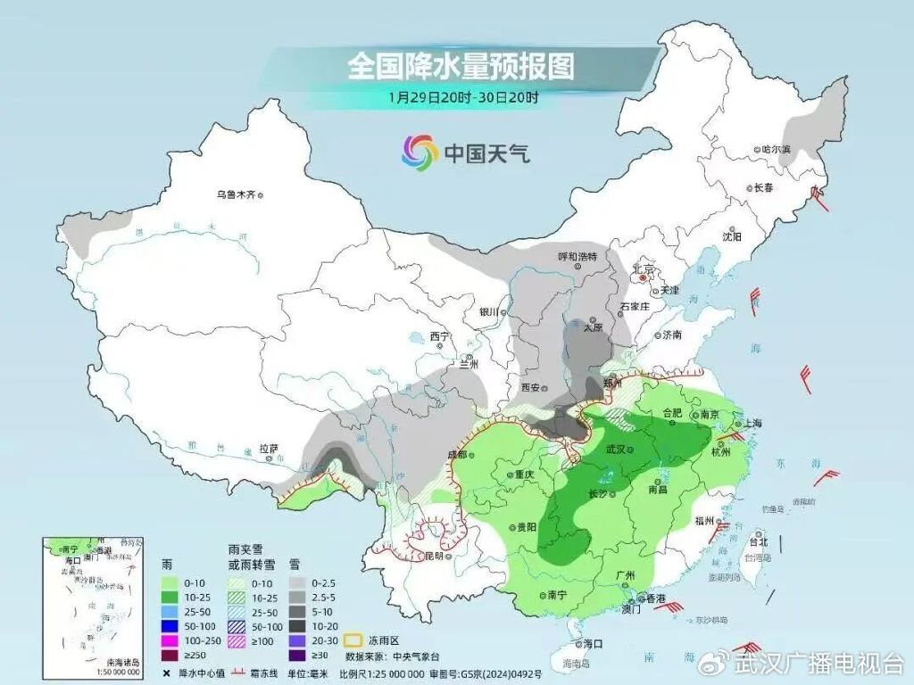 29日(周四)至30日(周五),湖北省再次迎来雨雪天气过程,鄂西北有中到大雪、局地暴雪,鄂西南北部至鄂东北一线小雨转雨夹雪,高山地区小到中雪或冻雨,局地大雪,其他地区小到中雨,届时平均气温将下降3-6℃。