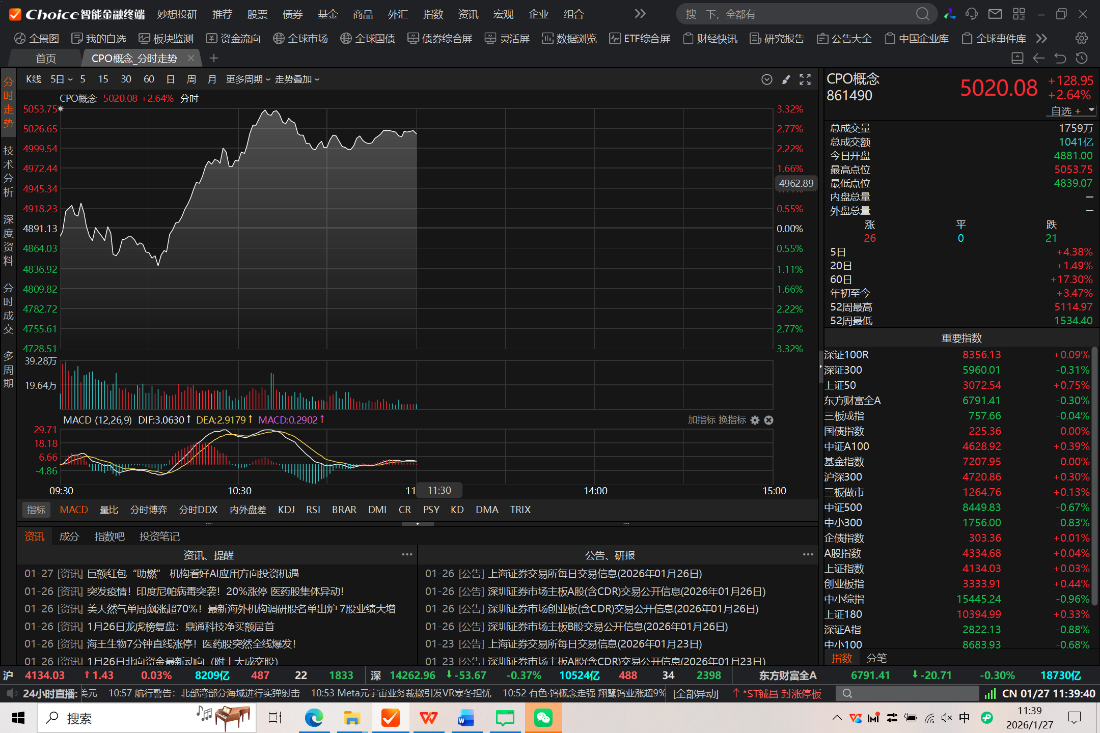 就在CPO概念股回暖当日,据新华社1月27日消息,我国将实施稳岗扩容提质行动,推出重点行业就业支持举措,出台应对人工智能影响促就业文件。