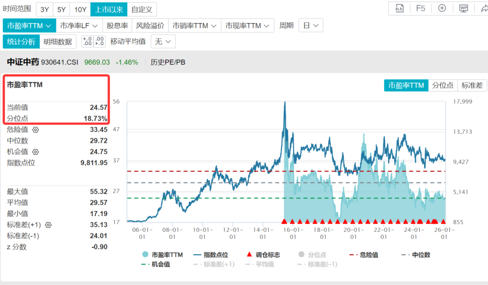 估值上看,中药ETF(560080)所跟踪复制的中证中药指数最新市盈率(PE TTM)为24.57倍,指数发布以来分位点18.73%,意味着指数市盈率已低于2015年5月发布以来81.27%的时间区间,估值性价比凸显!