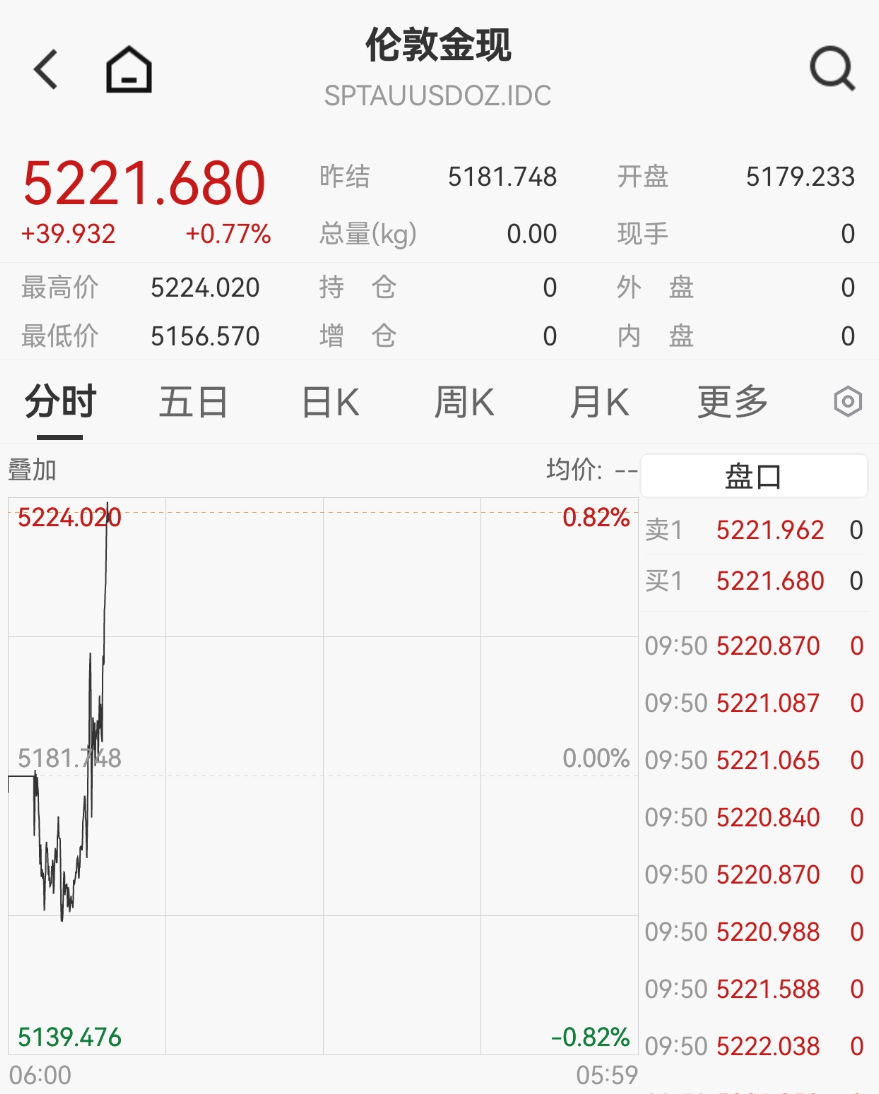 1月28日早间,伦敦金现冲破5220美元/盎司,连续8个交易日上涨,继续创历史新高。