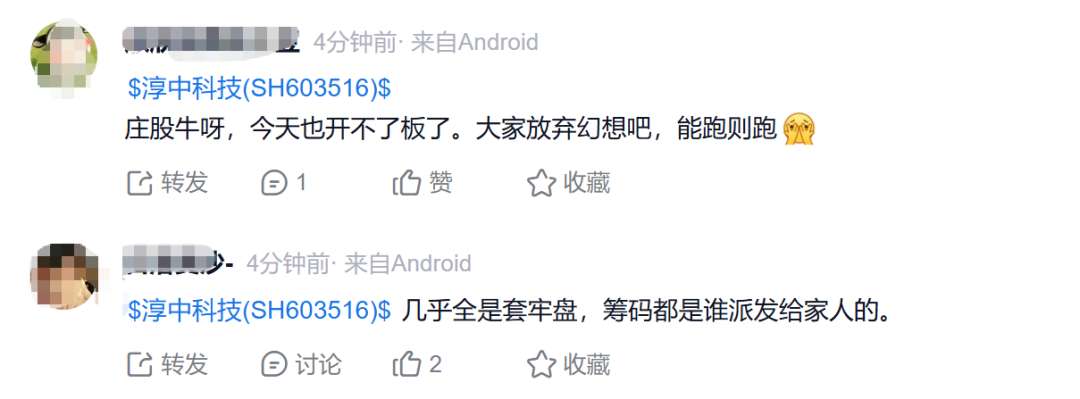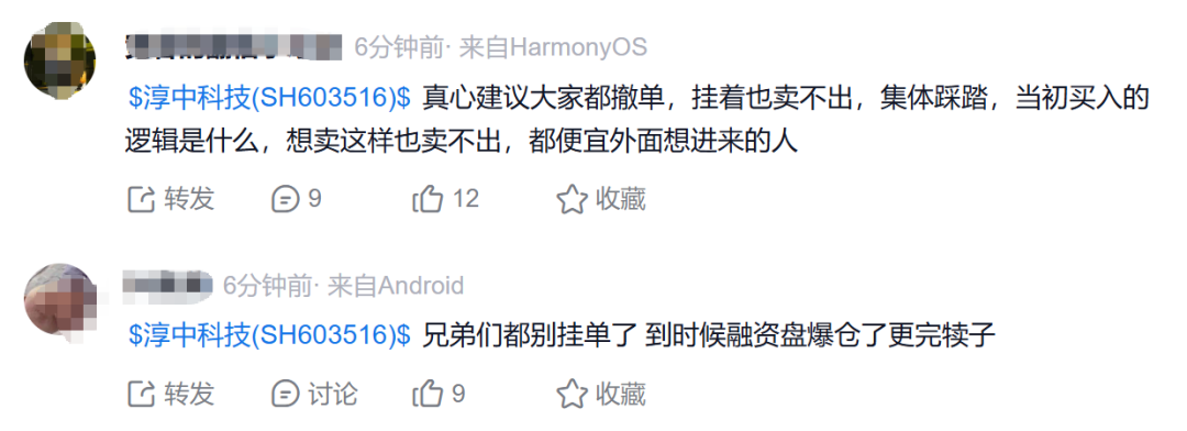 大量股民喊话称:“挂着也卖不出”“全是套牢盘”“放弃幻想”。