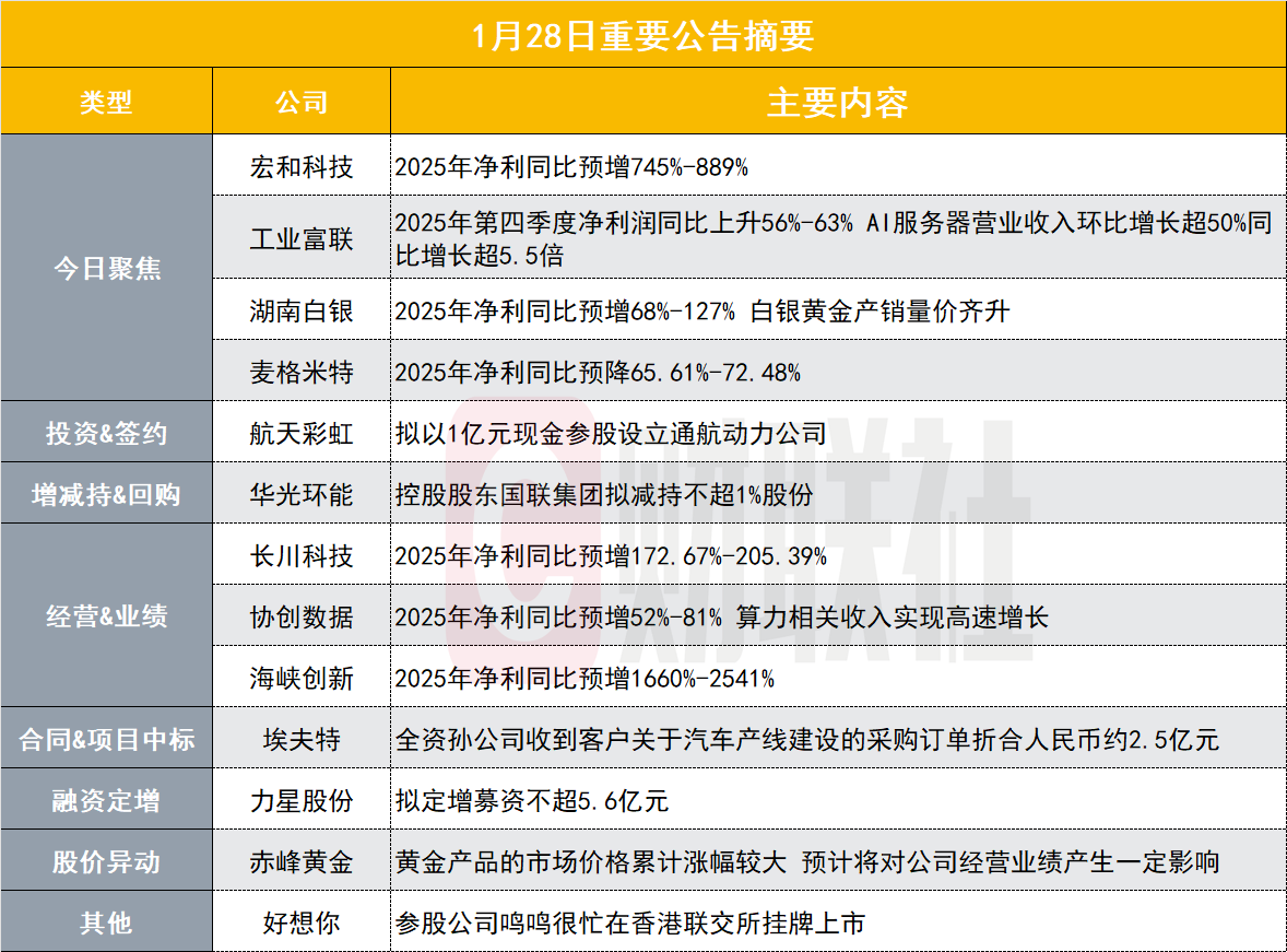 【工业富联:2025年第四季度净利润同比上升56%-63% AI服务器营业收入环比增长超50%同比增长超5.5倍】