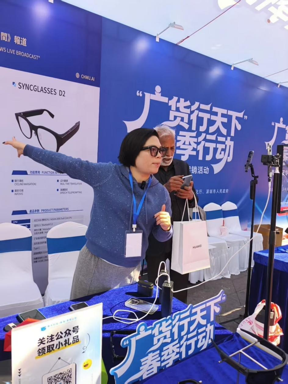 乘木科技负责人正在直播讲解智能眼镜