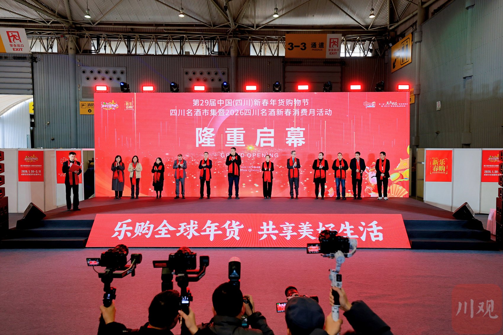 1月30日上午,第29届中国(四川)新春年货购物节(简称“第29届四川年货节”)在成都世纪城新国际会展中心正式开幕,同步在重庆设立了分会场。活动以“乐购全球年货,共享美好生活”为主题,吸引了36个国家和地区、近30个省(区、市)、省内21个市州上千家中外企业参展,汇聚了涵盖百年匠心老字号、新潮科技好物等领域的10万种优质年货,为市民朋友带来了一场集川味特色、全球好物、民俗趣味于一体的消费盛宴。