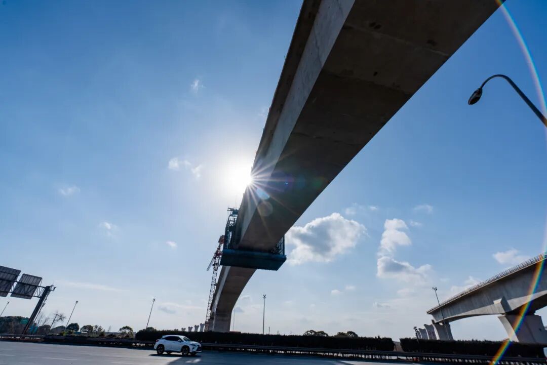 跨越高速公路施工面临诸多挑战,不仅施工难度大,而且安全质量管控要求也极为严格。S32申嘉湖高速公路车流量大,施工期间必须确保高速公路安全通行。同时,大跨径连续刚构悬臂浇筑施工,对箱梁线形控制、预应力控制、体系转换、合龙精度、箱梁温度收缩等指标均有严格要求。