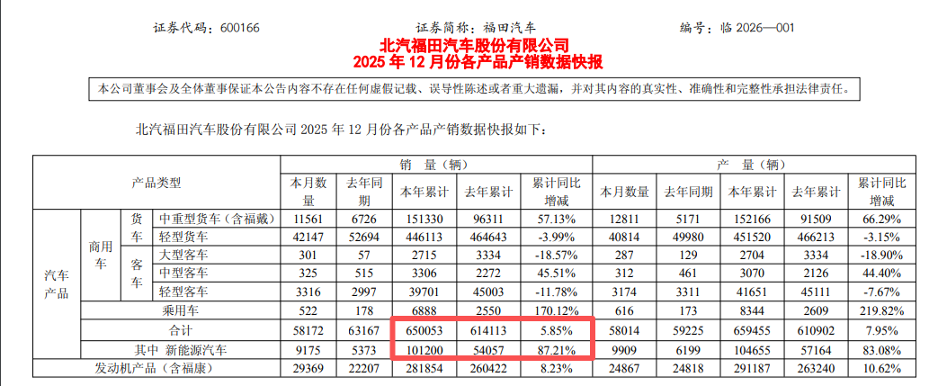 2025年,北汽集团的整车销量达175.20万辆,同比增长5.60%,其中福田汽车的整车销量达65.01万辆,同比增长5.85%。