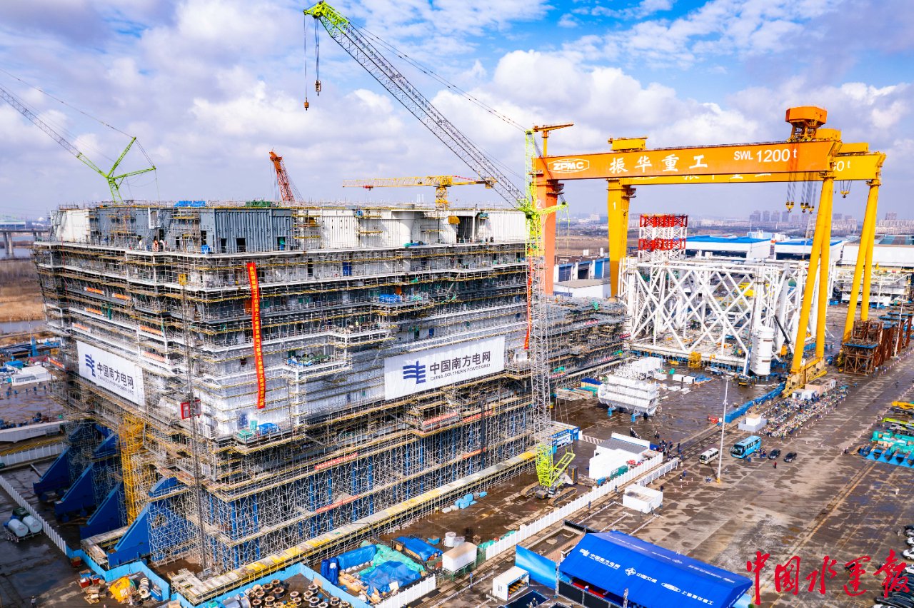 1月31日,上海振华重工集团参建的广东阳江三山岛500千伏海上风电柔直输电工程海上换流站顺利封顶。该项目是国内首个海陆一体海上风电柔性直流输电工程,建成后将通过先进的柔性直流技术,为粤港澳大湾区绿色低碳发展注入新动能。