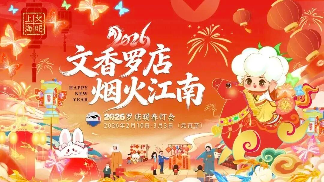 2026罗店暖春灯会以“一轴、三区、多氛围”布局,通过近20组灯彩展示以及系列非遗体验、剧场演出、赛事活动等,融合七百年古镇历史与现代元素,打造穿越时空的灯彩嘉年华。