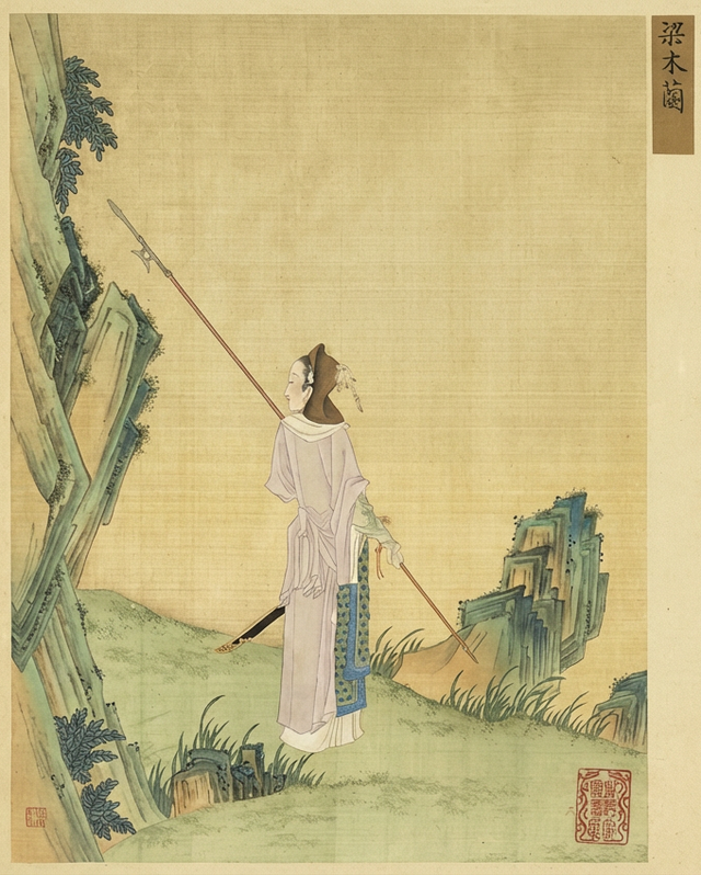 清代赫达资所作《画丽珠萃秀》“梁木兰”(绘画者认为木兰为南朝梁人)。