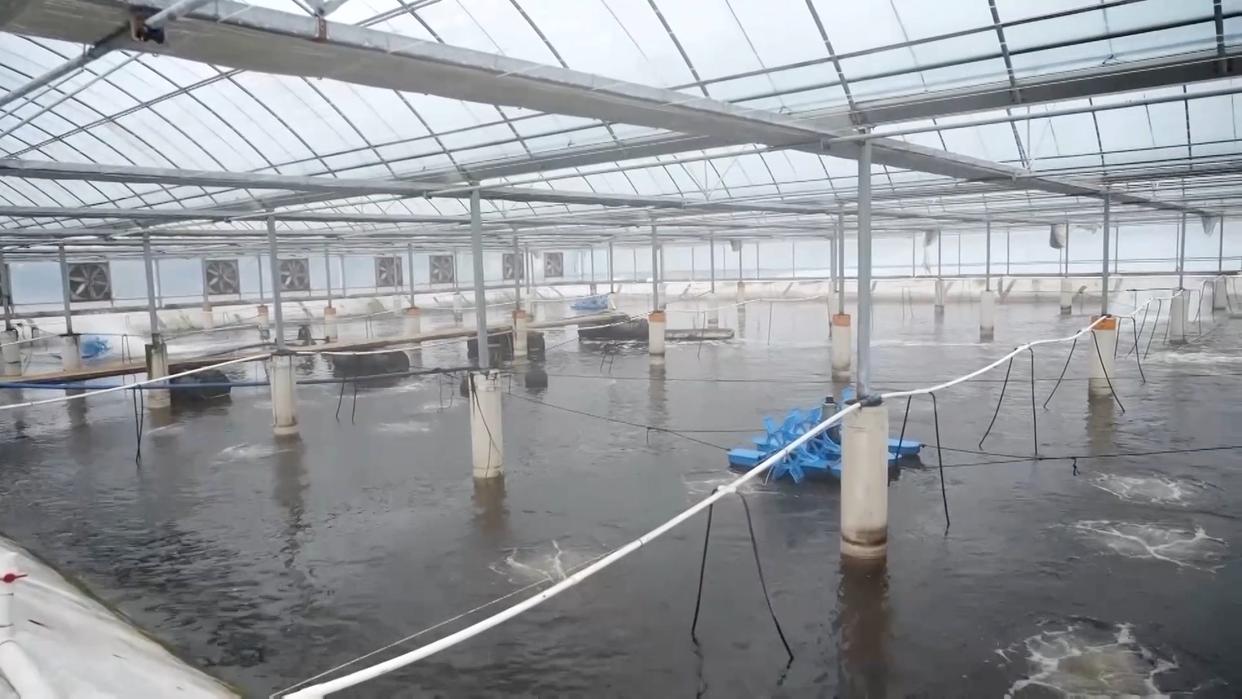 颜有蓬是一名“养二代”。2024年,该公司开始推广数字化工厂高密度养殖模式,对虾产量大幅增长,亩产达到6000斤,是普通池塘养殖模式的8倍。