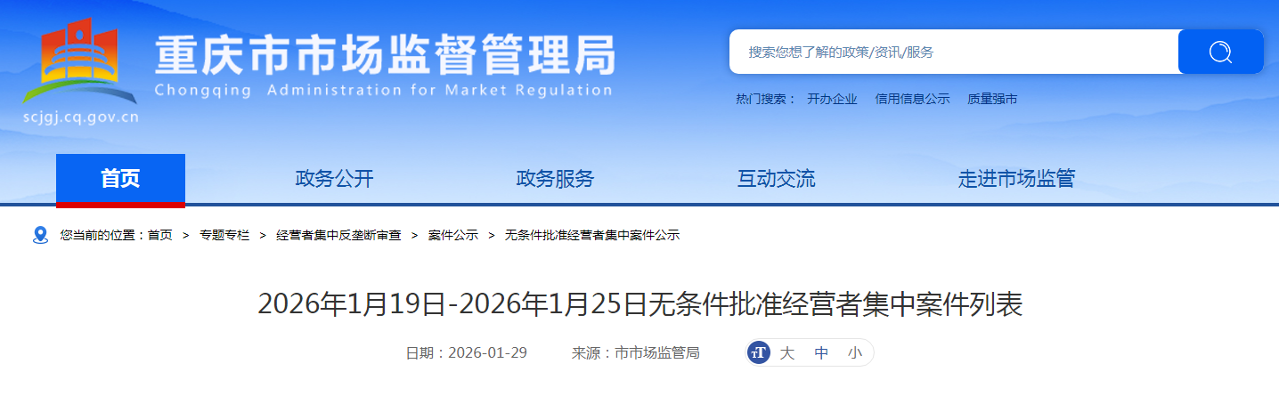 | 4 | 长江产业投资集团有限公司收购三环集团有限公司股权案 | 长江产业投资集团有限公司、三环集团有限公司 | 2026年1月23日 |